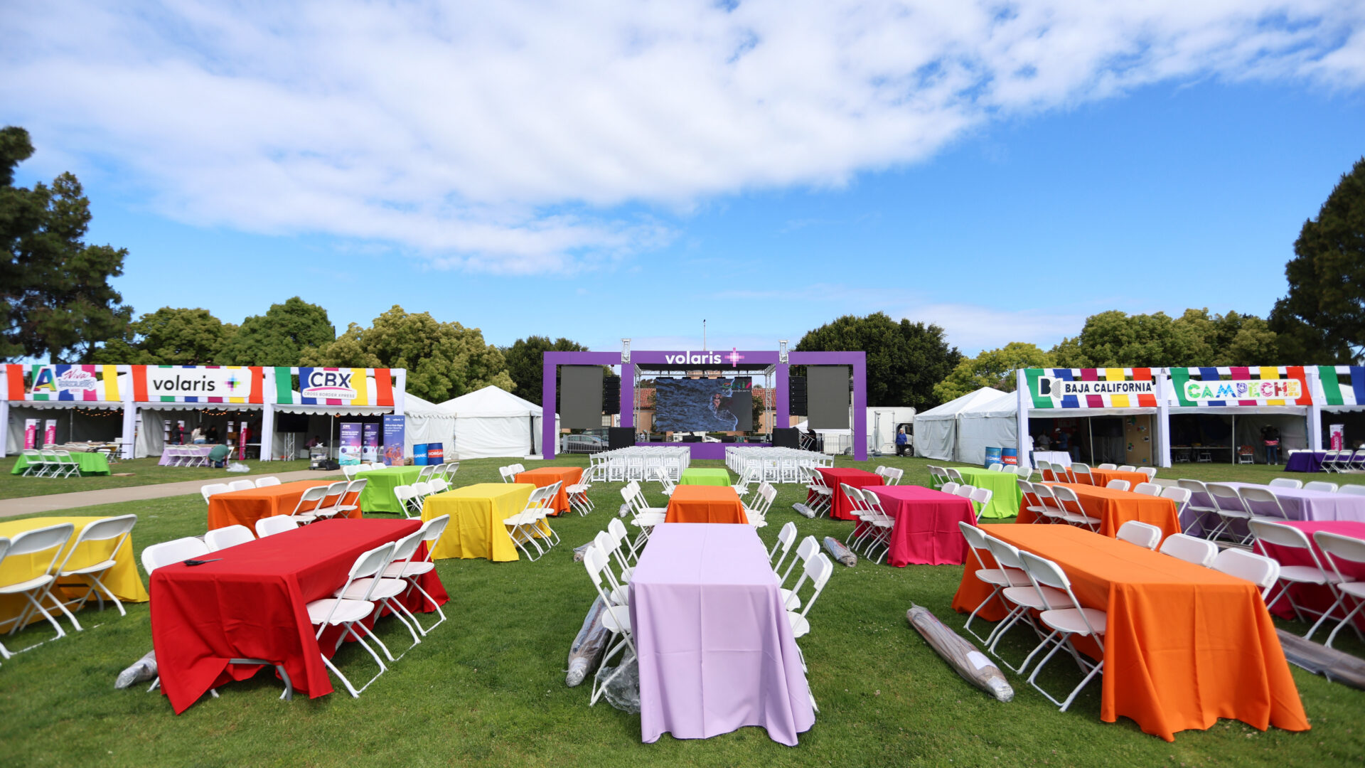 Mesas, sillas, estructuras modulares y más, con opciones personalizadas según el concepto.